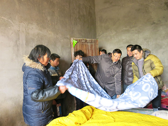 ??? 與江蘇海外集團(tuán)國(guó)際技術(shù)工程有限公司物資一起發(fā)放的還有溫暖一歲部分已達(dá)到物資,包括一床羽絨被、一床被套、一副手套。剩余物資包括圍巾、帽子將和2013年下半年資助款項(xiàng)一起發(fā)放給受助孩子。?(文字來(lái)源:愛(ài)德基金會(huì)網(wǎng)站)