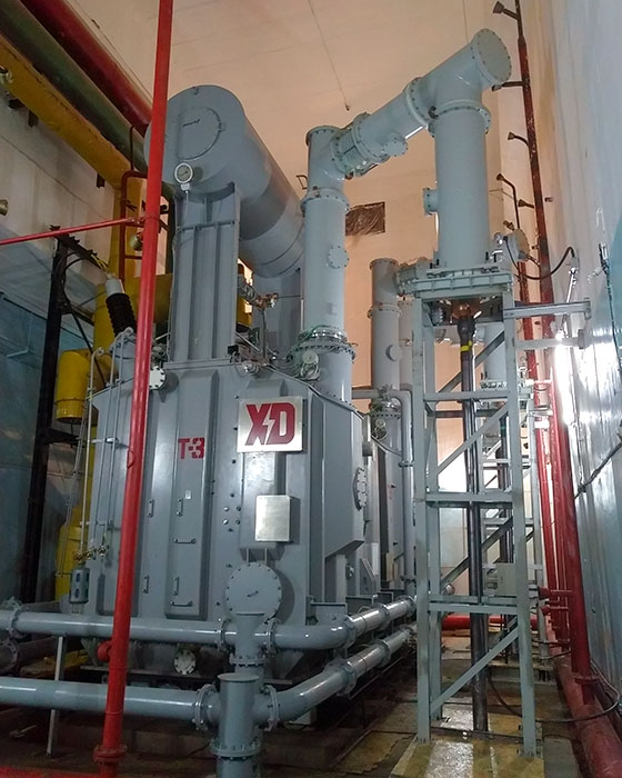 ????????Toktogul水電站為4臺300MW機組的發(fā)電站,該電站位于吉爾吉斯斯坦中部,坐落于納倫河上,其裝機發(fā)電量約占了吉爾吉斯斯坦已建成裝機發(fā)電量的三分之一。我司最終中標的一期項目第二標段電氣部件、電氣附件和儀表的改造和更換,主要包括了4臺500KV/425MVA主變壓器,4臺發(fā)電機出口斷路器,2臺15.75KV/4000KVA廠用油浸式變壓器, 630KVA和1000KVA廠用干式變壓器各2臺,6KV中壓開關柜24面,0.4KV低壓柜39面以及2套500KV線路繼電保護柜等電氣設備的供貨,原有舊設備的拆除和新設備的安裝。