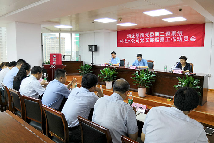 ????????根據2018年度海企集團黨委巡察工作總體部署,海企集團黨委巡察二組對江蘇海外集團國際技術工程有限公司黨支部開展巡察工作,并于 8月13日下午,在新華大廈21樓會議室組織召開巡察工作動員會。集團黨委巡察二組全體成員、江蘇海外集團國際技術工程有限公司在寧領導班子全體成員、中層干部、下屬基層單位主要負責人、部分黨員代表和職工代表共計40余人參加大會。江蘇海外集團國際技術工程有限公司黨支部書記、董事長、總經理林敏同志主持會議并作表態(tài)發(fā)言。