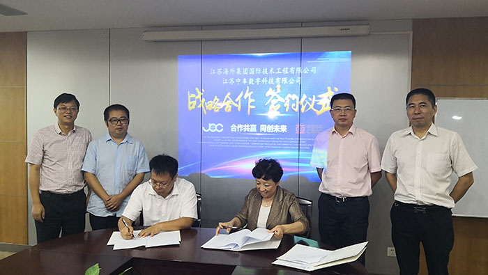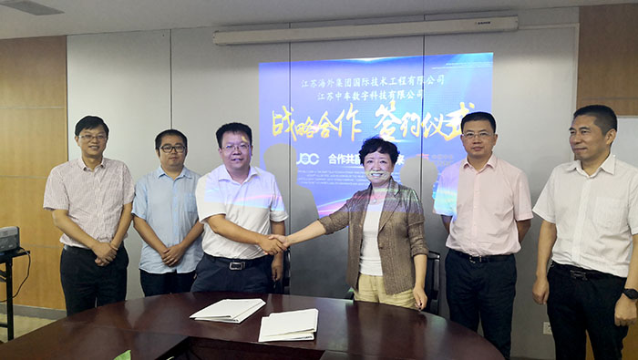 ????????2018年9月5日,江蘇海外集團(tuán)國(guó)際技術(shù)工程有限公司(以下簡(jiǎn)稱(chēng)“海企技術(shù)”)與江蘇中車(chē)數(shù)字科技有限公司(以下簡(jiǎn)稱(chēng)“中車(chē)數(shù)字”)戰(zhàn)略合作協(xié)議簽約儀式隆重舉行并順利簽約。海企技術(shù)公司董事長(zhǎng)兼總經(jīng)理林敏、副總經(jīng)理徐春江、副總經(jīng)理周兵、副總經(jīng)理李丁洲、中車(chē)數(shù)字董事長(zhǎng)李立、副總經(jīng)理李峰等雙方領(lǐng)導(dǎo)出席了簽約儀式。?