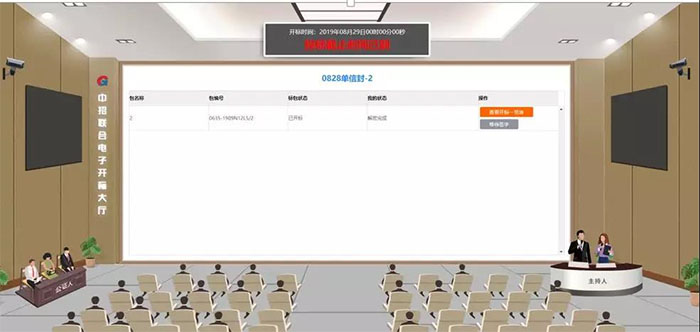 ????? 系統(tǒng)設(shè)置虛擬開(kāi)標(biāo)大廳,網(wǎng)上實(shí)現(xiàn)開(kāi)標(biāo)、投標(biāo)文件解密、開(kāi)標(biāo)一覽表網(wǎng)上簽字,同時(shí)提供視頻直播、屏幕直播,項(xiàng)目委托人、項(xiàng)目監(jiān)管人員、投標(biāo)單位等遠(yuǎn)程參與和監(jiān)督。