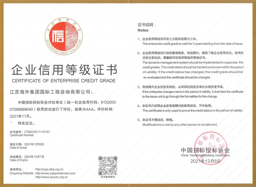 中國(guó)招標(biāo)投標(biāo)協(xié)會(huì)企業(yè)信用等級(jí)AAA證書