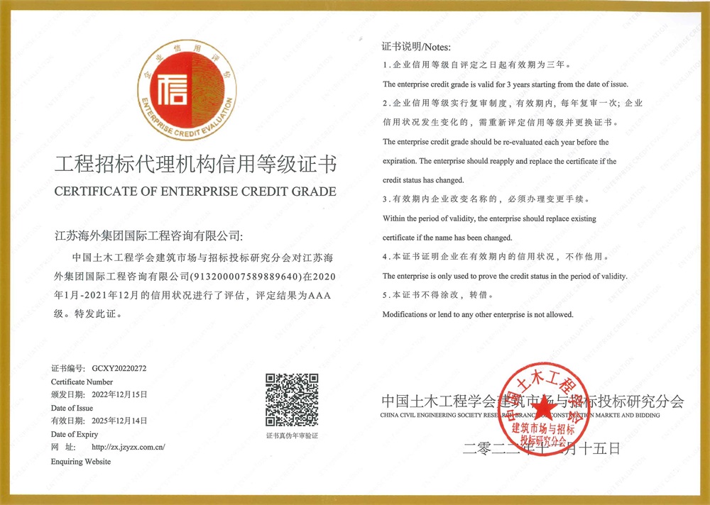 中國(guó)土木工程學(xué)會(huì)工程招標(biāo)代理機(jī)構(gòu)信用等級(jí)AAA證書