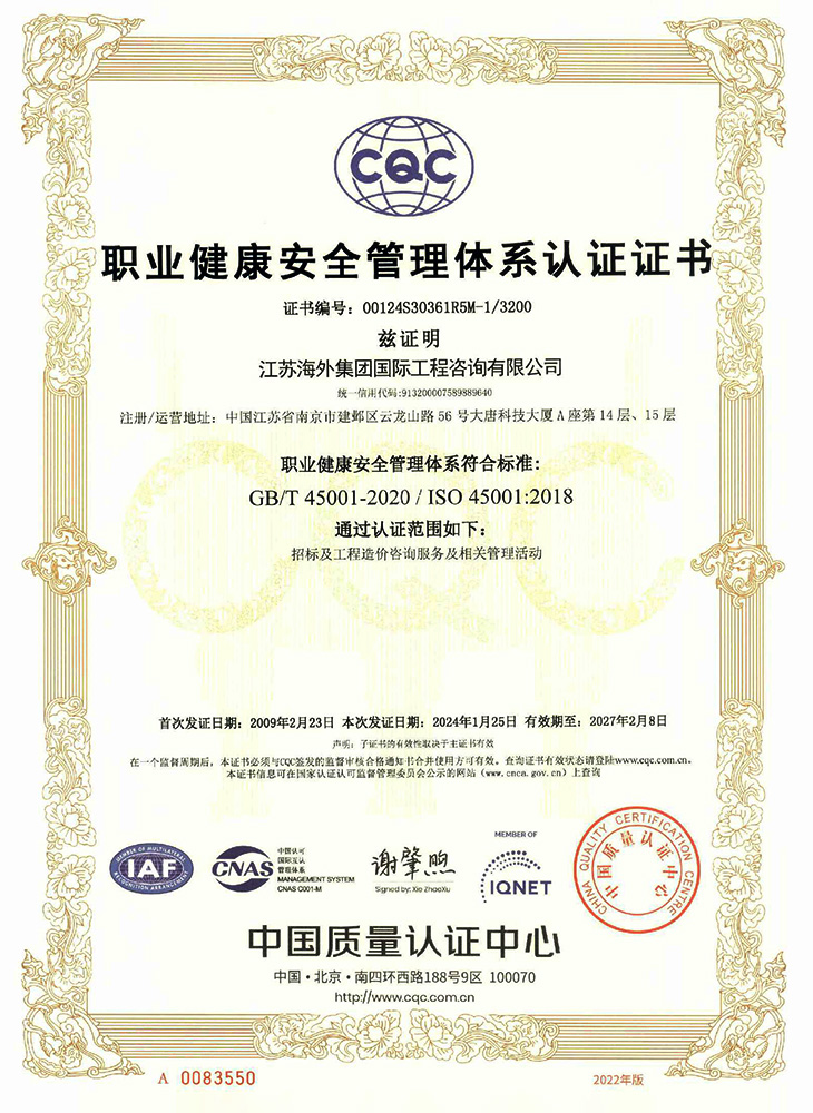 職業(yè)健康安全管理 體系認(rèn)證證書